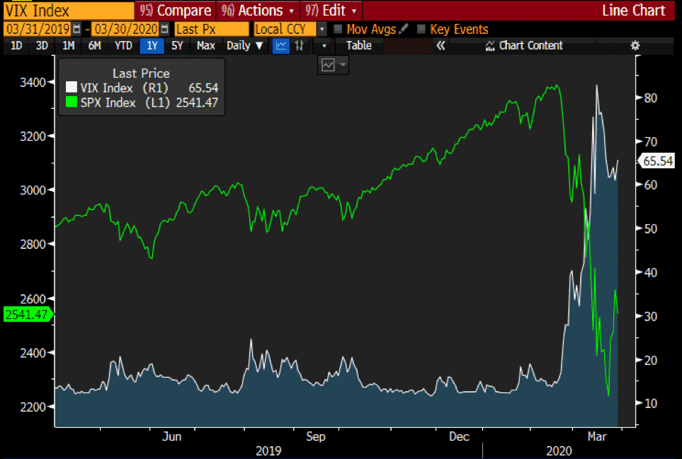 The novel coronavirus has created such uncertainty around the globe, which has caused plunges in global equities. Despite the VIX easing to 65.54, further wild swings seem certain in the next couple of weeks.