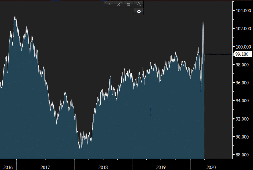 Even though the greenback has somewhat retreated as policymakers stepped in to enhance flows, the US dollar index remains in elevated levels just below 100. A significantly bigger stimulus package compared to its peers are fuelling hopes that the US economy would probably recover faster than other major economies.