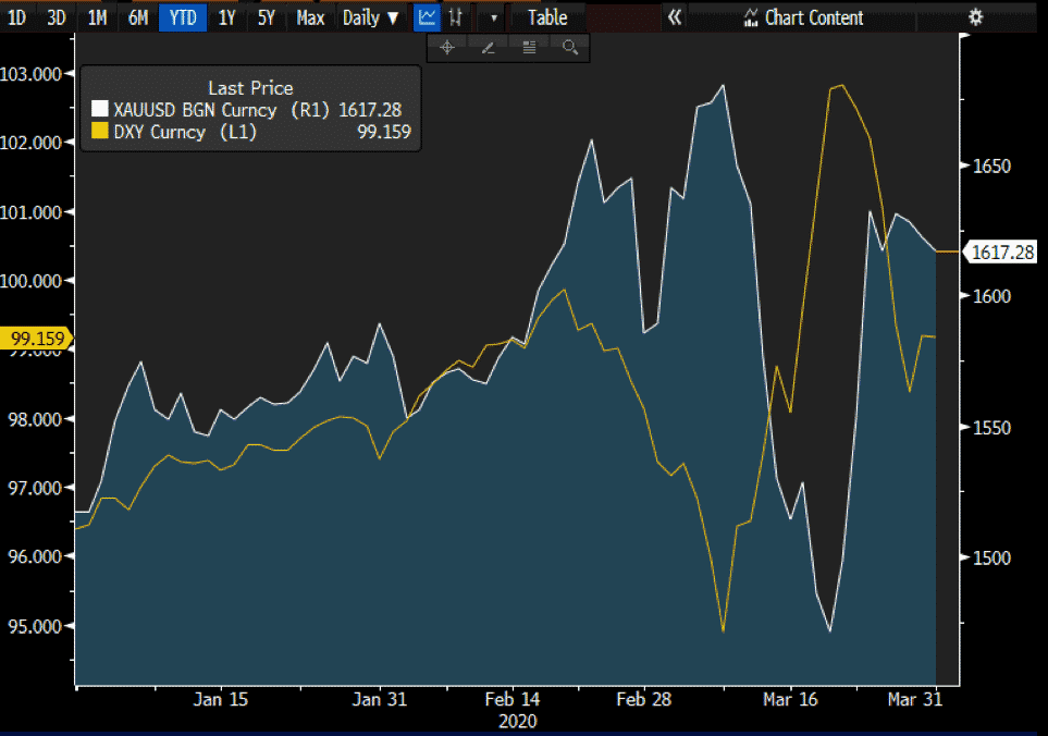 Once investors were reassured that central bankers are injecting money into the financial system, investors resumed the buying of gold as a safe-haven. At the same time, gold is facing disruptions in the physical markets due to the shutdown of gold refineries leading to a shortage of gold. A combination of positive fundamentals, weaker US dollar and rescue packages lifted the XAUUSD pair back above the psychological level of $1,600.